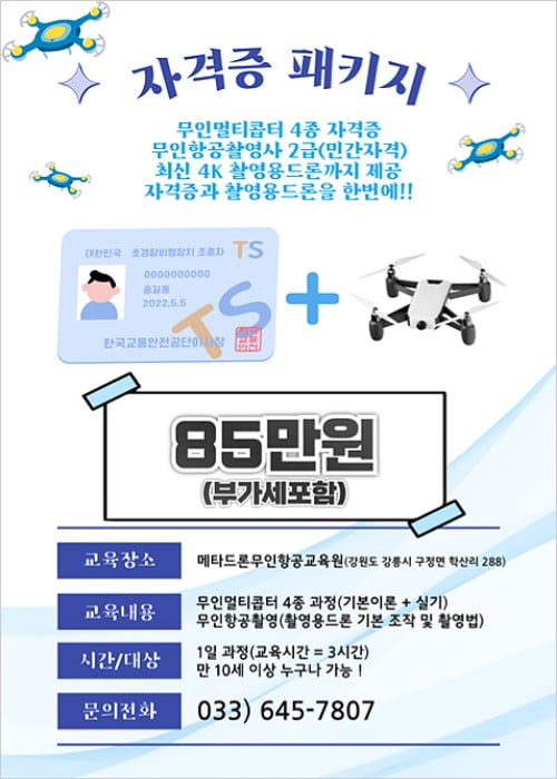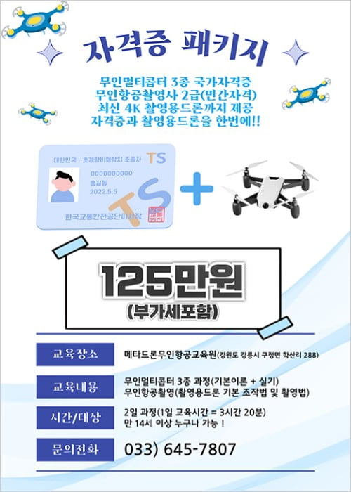 | 교육장소 | 메타드론 무인항공 교육원 (강원도 강릉시 구정면 학산리 288) |